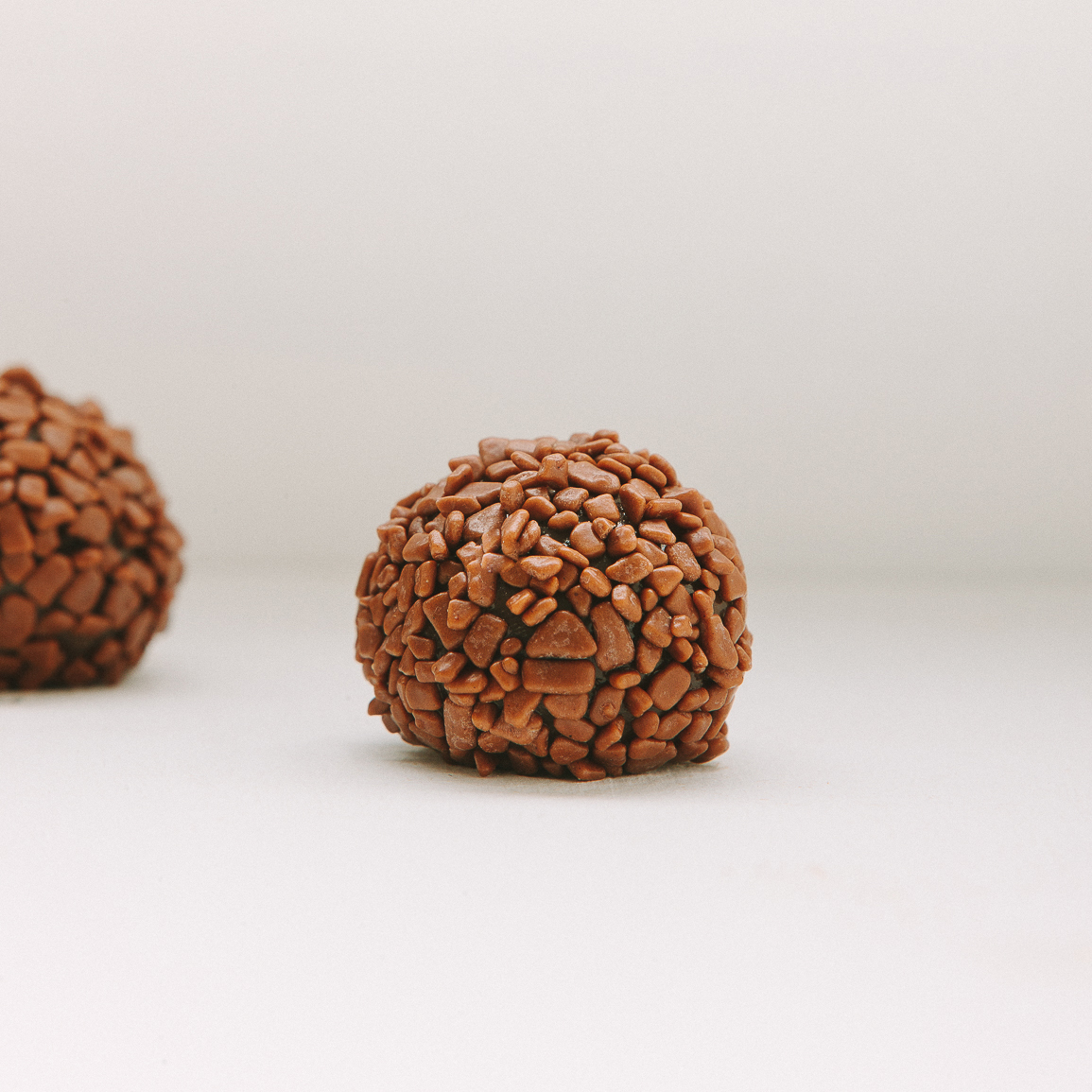 Brigadeiro macio feito com chocolate ao leite belga envolto em split ao leite.