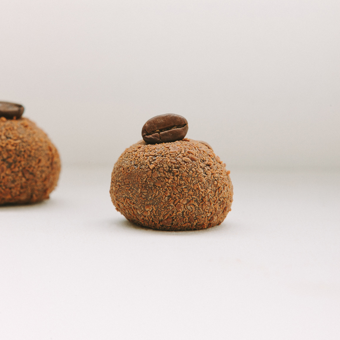 Brigadeiro macio de leite condensado com café envolto em raspas de chocolate ao leite.